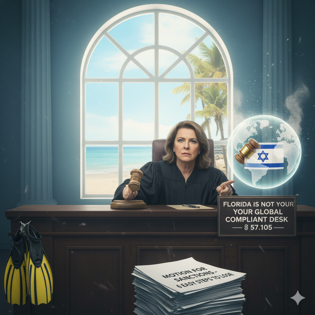 Glickman tried to drag a purely Israeli story into a Florida court. The result? A motion to kick it out, shut it down, and send him the bill.